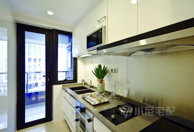 黑色烤漆玻璃餐桌增添了時尚感。