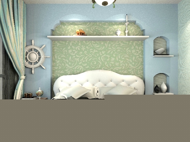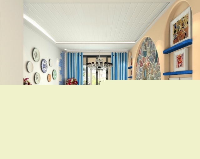 以海洋的蔚藍(lán)色為基色調(diào)的顏色搭配方案,自然光線的巧妙運(yùn)用,富有流線及夢(mèng)幻色彩的線條等軟裝特點(diǎn)來(lái)表述其浪漫情懷。