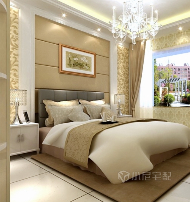 臥室的設計實用而舒適。一張大床配合靠包和各種簡潔造型的家具,整體風格親切柔和,讓臥室顯得溫馨而極具幸福感。