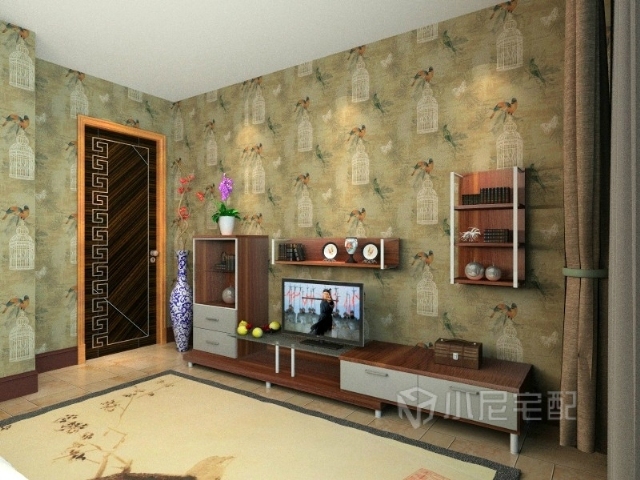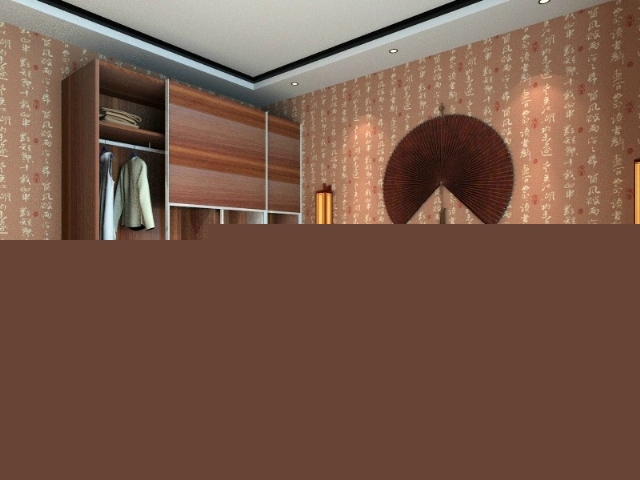 主臥家具采用中國胡桃顏色,能夠與壁紙更合理的搭配