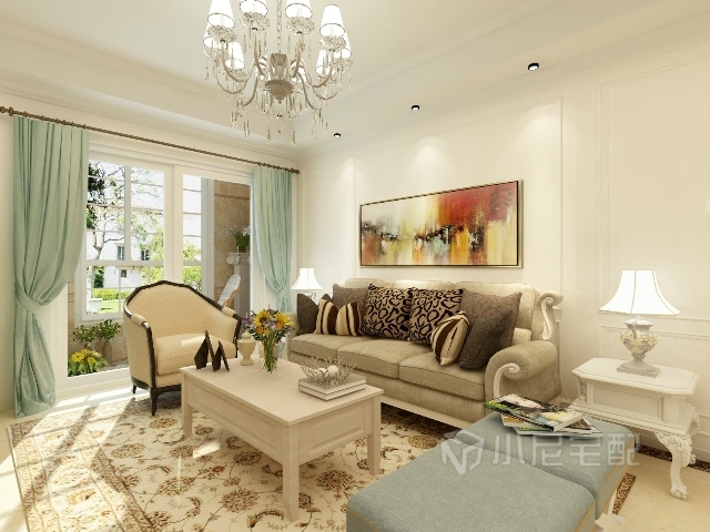 美式的地毯,剔透的吊燈,整個空間顯得干凈又自然。
