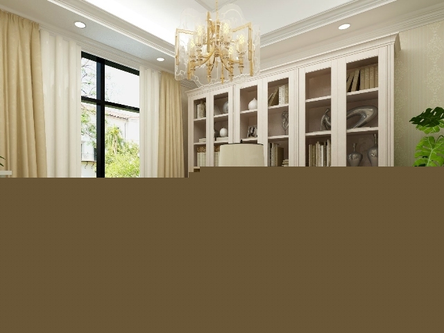 大氣的書柜,造型簡潔的書桌,淡黃色的窗簾,綠植的搭配,打造一個讓人安靜專注的的書房