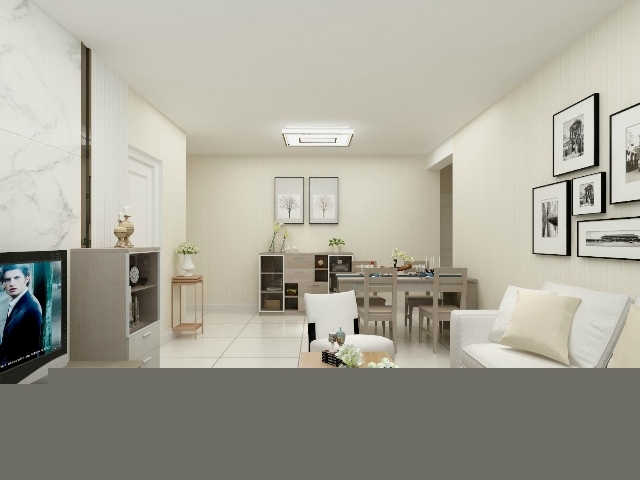 客廳整體采用淺色,彌補客廳朝北采光上的不足。簡潔明朗的硬裝搭配小尼丹麥暖陽系列的電視柜,整體更加大氣、實用。