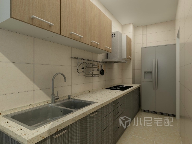整體廚房,從洗滌區-加工區-烹飪區,完全符合正常的操作流程。