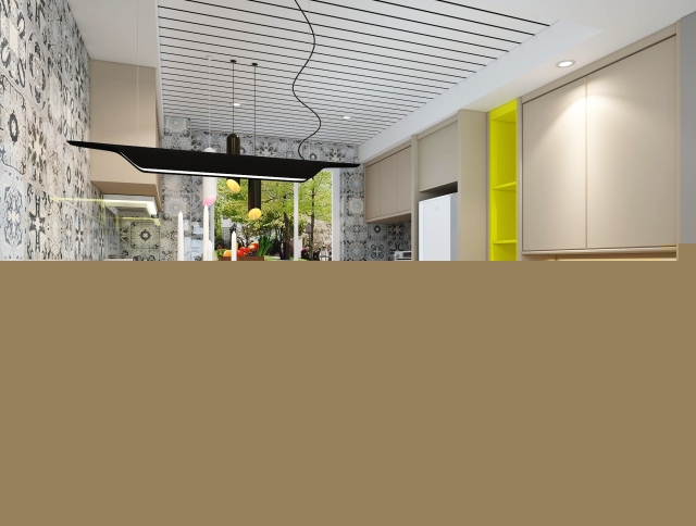 由于原始戶型廚房較小,所以經過墻體拆改,將餐廳廚房,門廳搭配到一起,整體顏色搭配采用小尼地平線系列,與花磚形成強烈對比,使整個空間更溫馨,更出彩