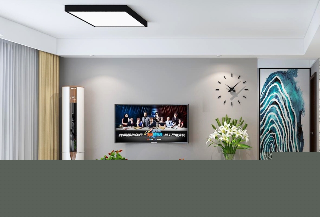 客廳電視背景墻采用素色壁紙滿鋪,不作任何裝飾,簡約明快