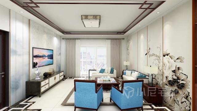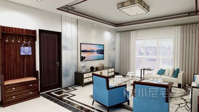 本戶業主是個三口之家,45歲。女兒21歲。一家人比較喜歡沉穩的裝修風格,女主喜歡書法,整個效果是以古典元素為中心,考慮客戶年齡,軟飾上我選用了米色和各種藍色呼應。活躍了深顏色帶來的沉重感。