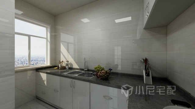 廚房暖色的墻磚搭配白烤漆櫥柜,簡潔輕快