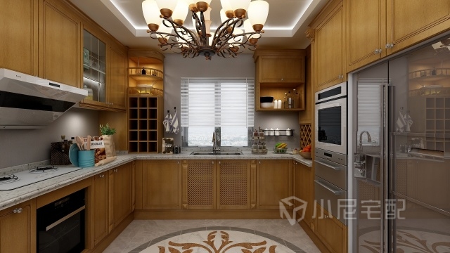 U型廚房布置,活動空間充足,三角動線明確