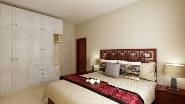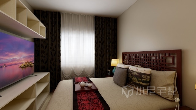 全屋定制下來的家具在滿足衣柜基本功能的前提下還提供了在床上看電視等休閑娛樂功能。