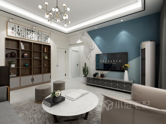 簡單時尚的造型,給現代簡約客廳帶給人一種清爽的感覺,就算是炎炎的夏日也不容易當人感覺到煩躁。深色帶給人沉穩的感覺,又顯得特別大氣。白色無規則線條的家具,讓整個空間充滿創意,高端檔次的感覺立即就上來了。