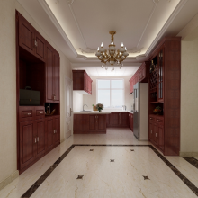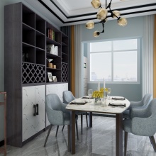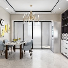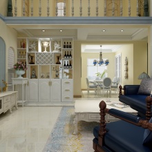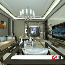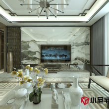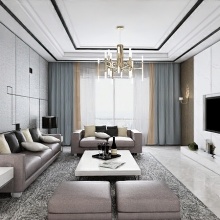 逐影隨行系列全屋定制家居,盡顯低調奢華的內涵。頂面為三級吊頂、鈦金條裝飾。