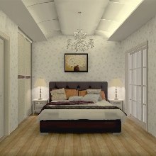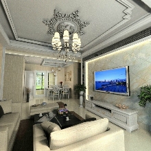 此戶型屬于小平房型,首先要合理運用空間,客戶想做簡歐風格,由于空間的狹窄,用石膏線和有象征性的歐式裝飾物做裝點 ,選用了條狀的米色壁紙,同時擁有歐式的效果和闊達的空間感。