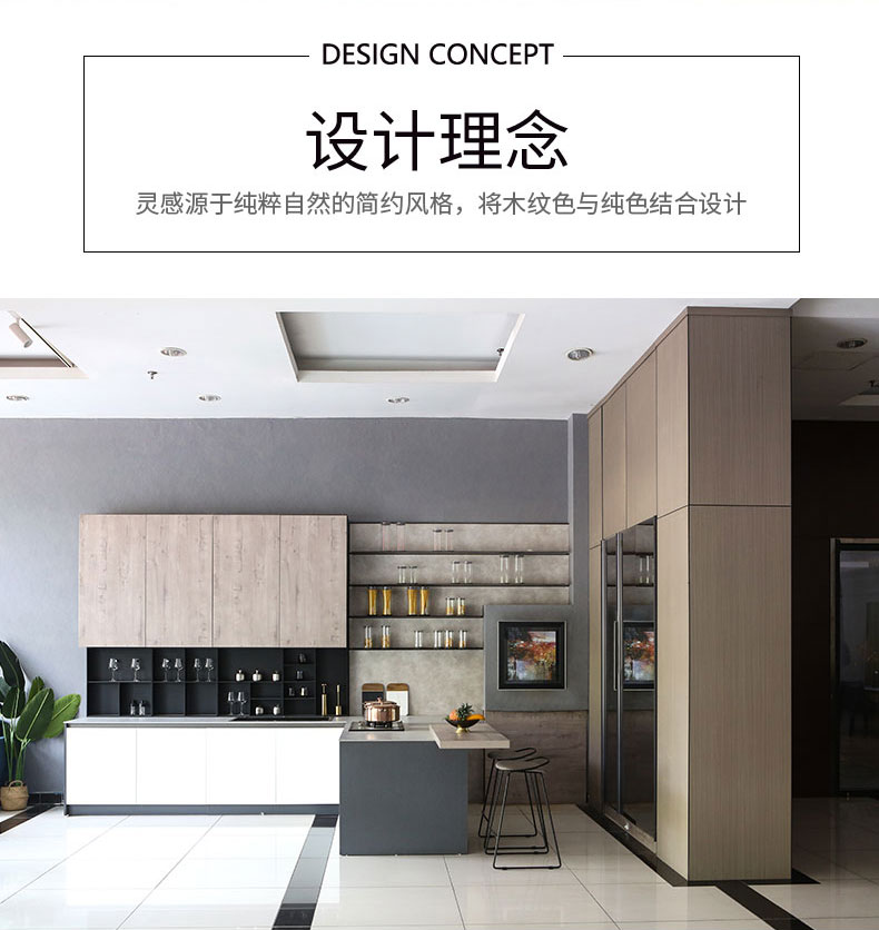 木紋肌理與純色搭配,給人以素雅自然的感覺